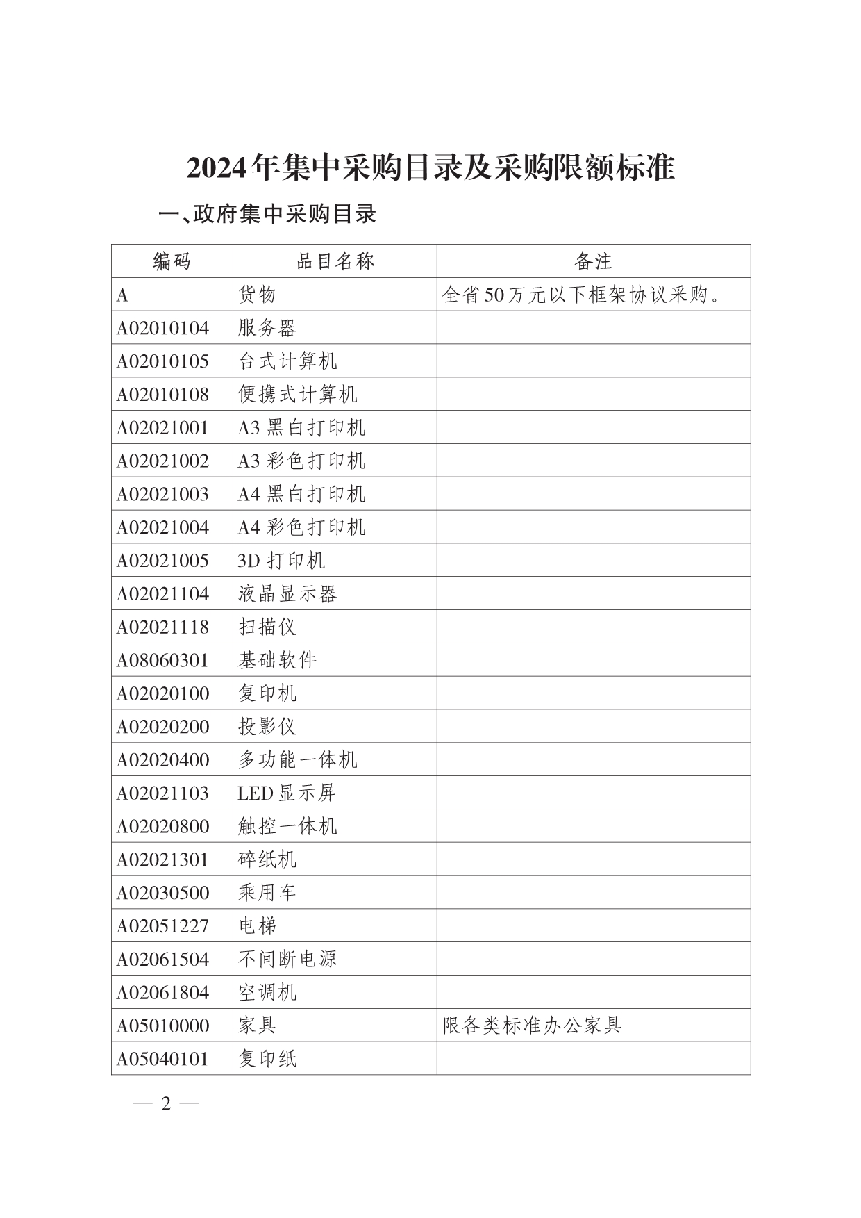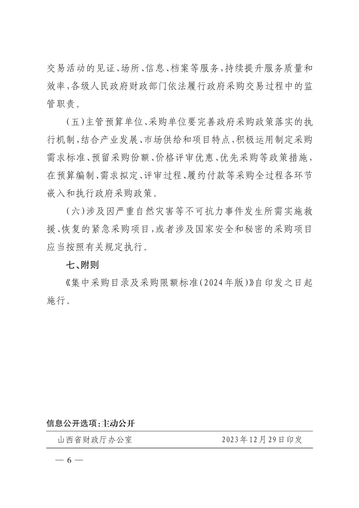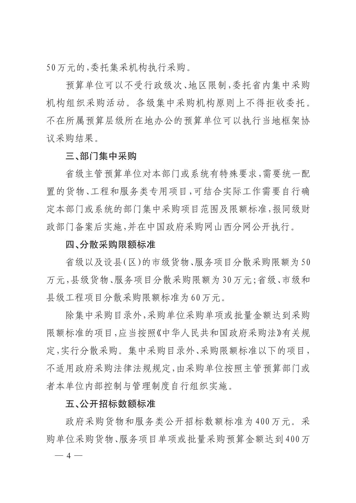 山西省集中采購(gòu)目錄及采購(gòu)限額標(biāo)準(zhǔn)(2024年版)